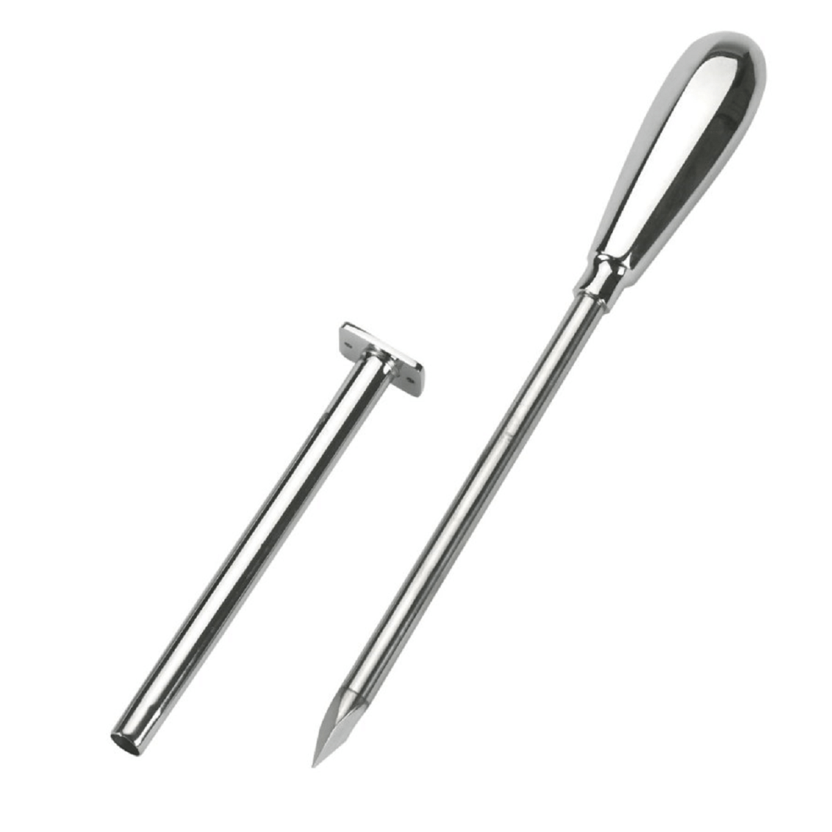 Metal saplı, krom kaplamalı trokar 0.5 mm kalınlığında 9 cm uzunluğundadır.